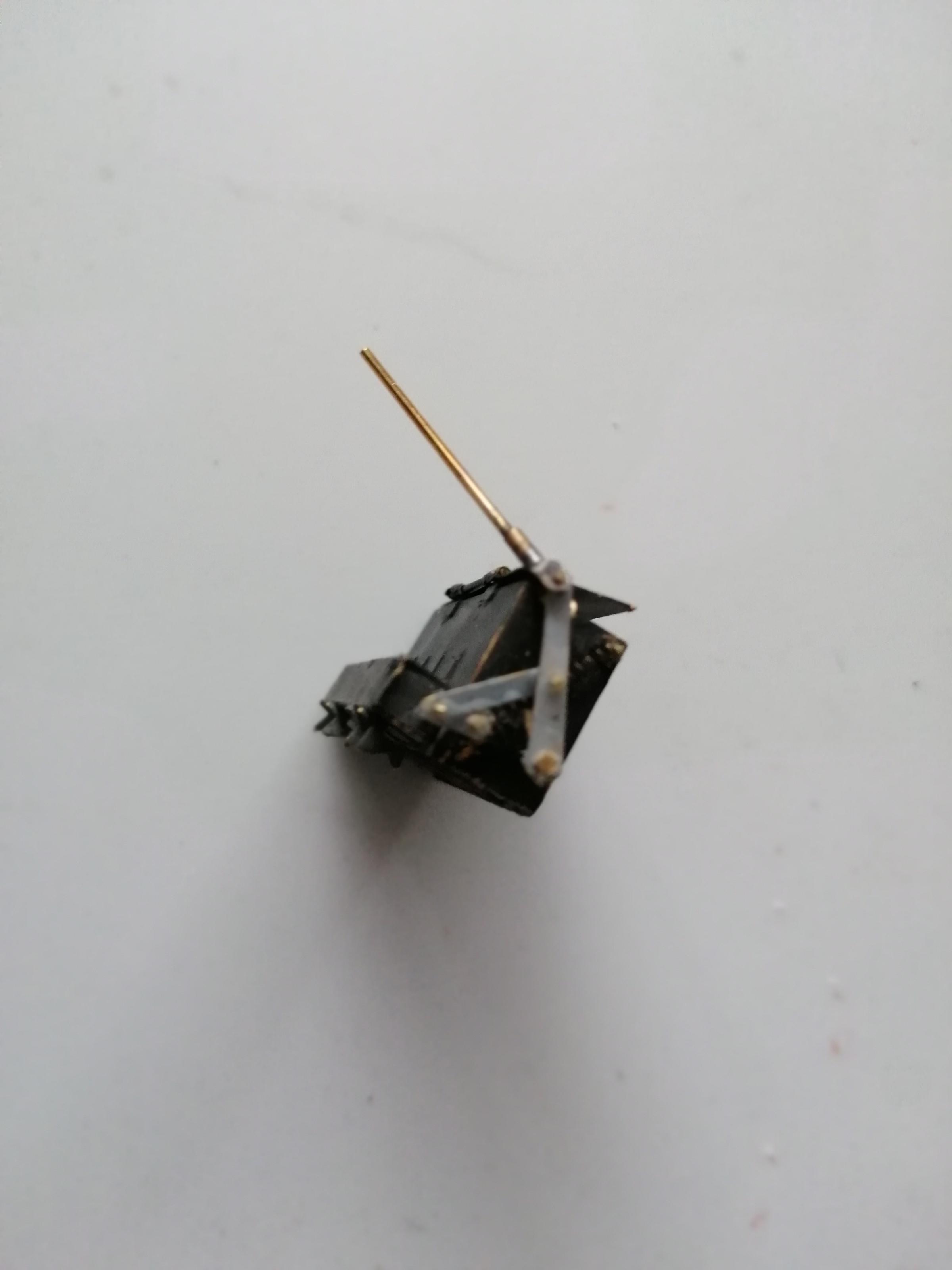 There are 13 or 14 different pieces of photo etch and brasss rod involved and to get them assembled it would have been useful to have a very small tame octopus. 2 hands are somewhat inadequate. The more I looked at the diagram, the more it seemed that the mechanism was supposed to work, but that was a bridge too far for me. It is all superglued in place. This is the end result.