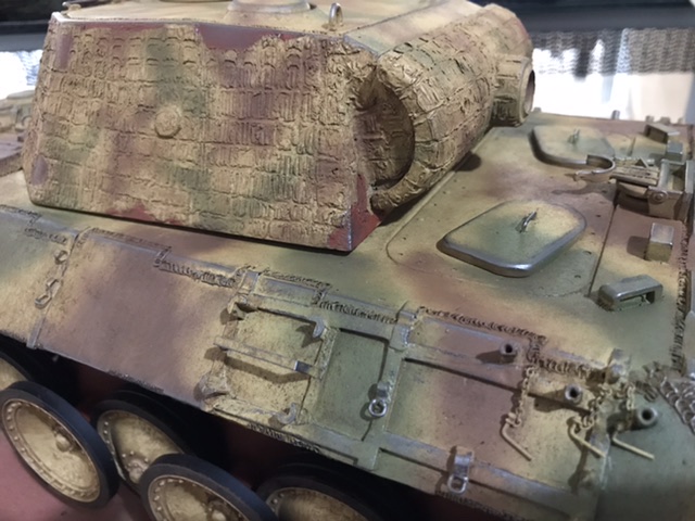 To cover the hole in the mantlet that the absent gun left I used a patch of cloth secured with a small rubber band used to retain braces, and once in place additional cover with a length of embroidery yarn coloured as rope.