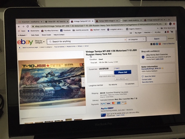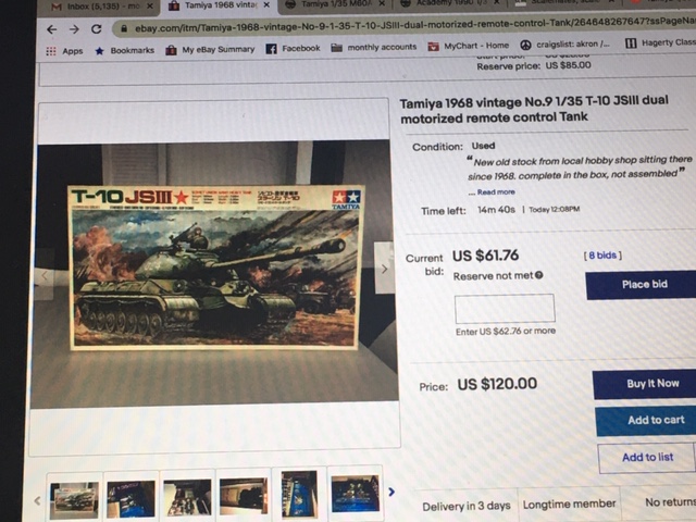 Then model is on ebay now. I really do not like the track design as it seems to be all by itself. Maybe someone will want this kit for parts or restore a used Tank as this kit is NOS. Guys with the Single motorized kits could use this one to upgrade to dual motor remote control. I saw a guy from the UK on ebay selling a single motor motorized Tamiya T-10 JS III.