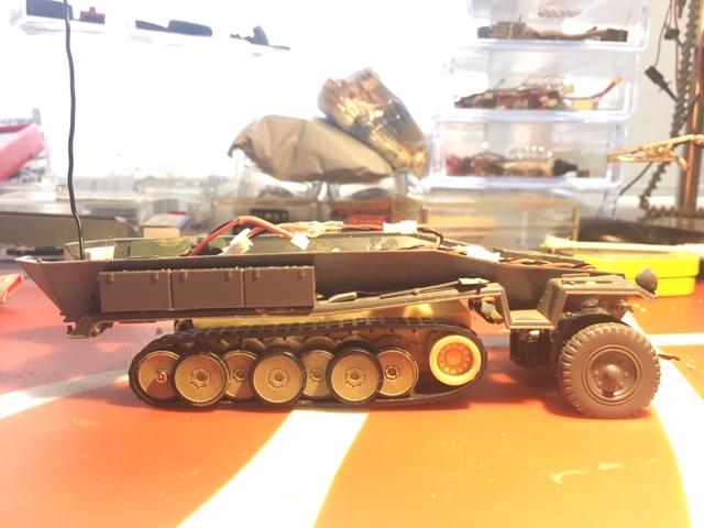 I was running it today when I could no longer stand to look at the track road wheels because there was 1 to many per side. It is supposed to have 7 per side and it had 8 so...Tore it apart and eliminated 2 road wheels and then started the slow process of getting it back together.