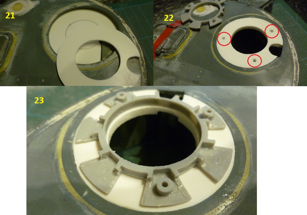 21-The replacement turret roof section was used to mark the centre hole for the base plate below.