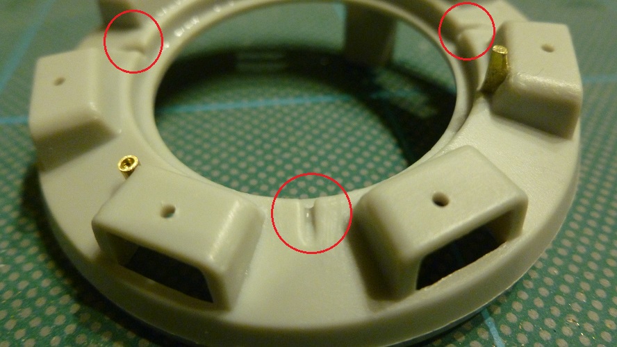 13-With a sharp knife and a file remove these tabs all the way around the Cupola base. They should all look like this once you have filed/cut the tabs off.