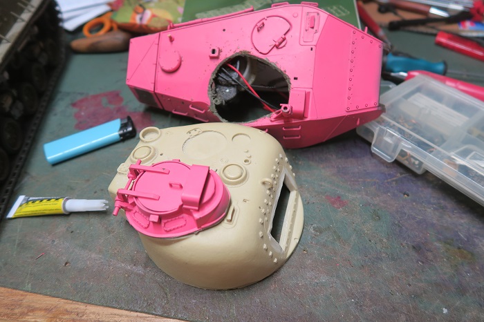 And when i was looking and searching for an M4 cupola, and can not find annything, but want to got vorward with the M4 build, i decieded to take the M41 one.....not scale, but i was shure i never need the M41 turret, cause i have 2 good working M41. And the Pink color....i think it was an Lady´s Tank some time ago....