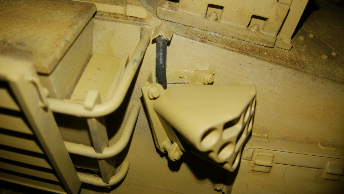 As some modelers have pointed out, the mount of the smoke discharger has a different shape. The shape of the smoke discharger mount in this model is cantilevered in mechanics.