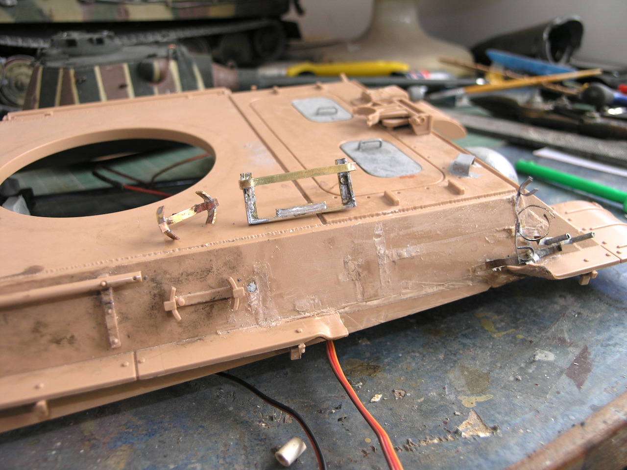 The PE sprue was too fragile so started to replace the block holder and the tool rack, was easy to bend out of shape . Found some brass strip the correct size much stronger.