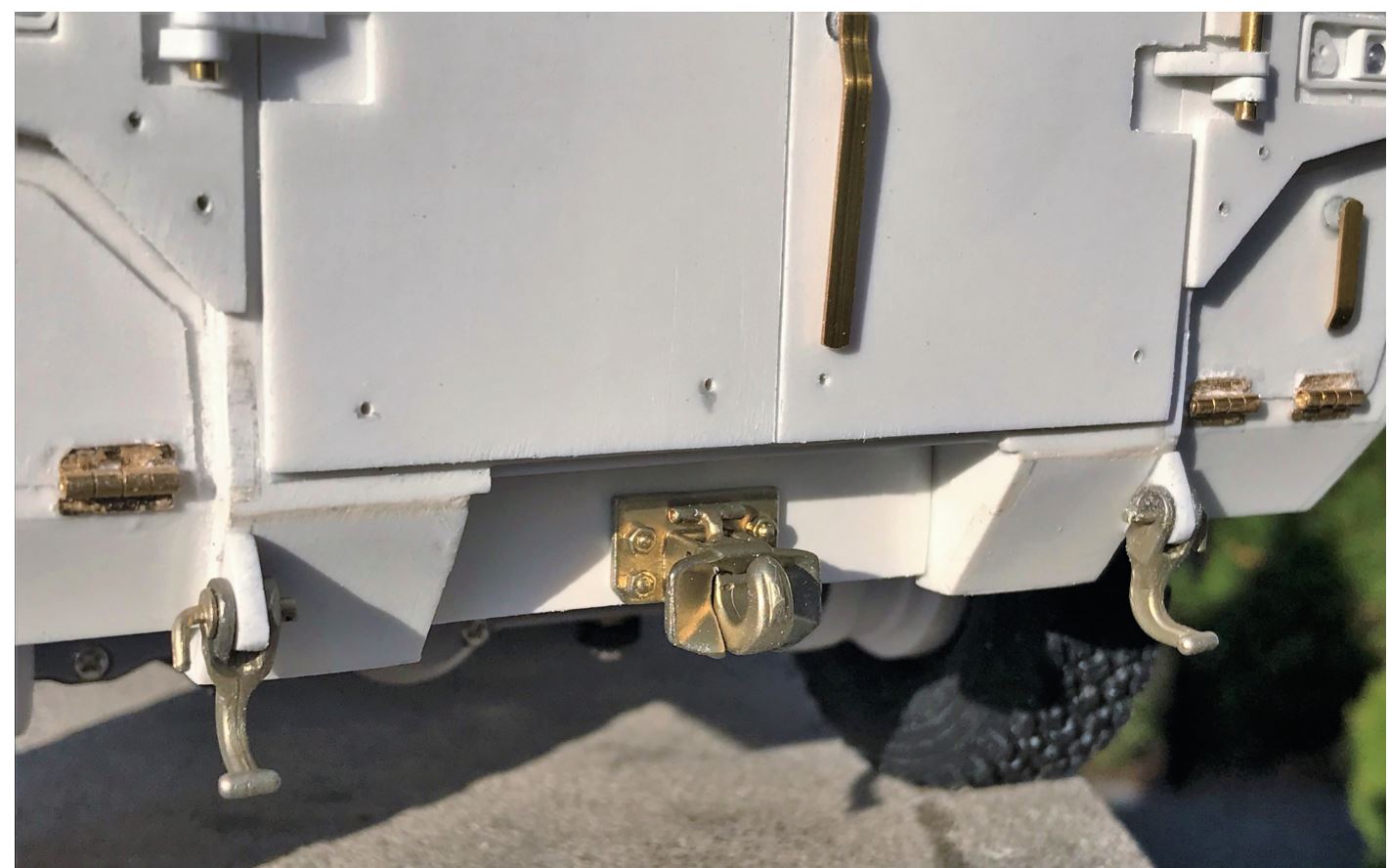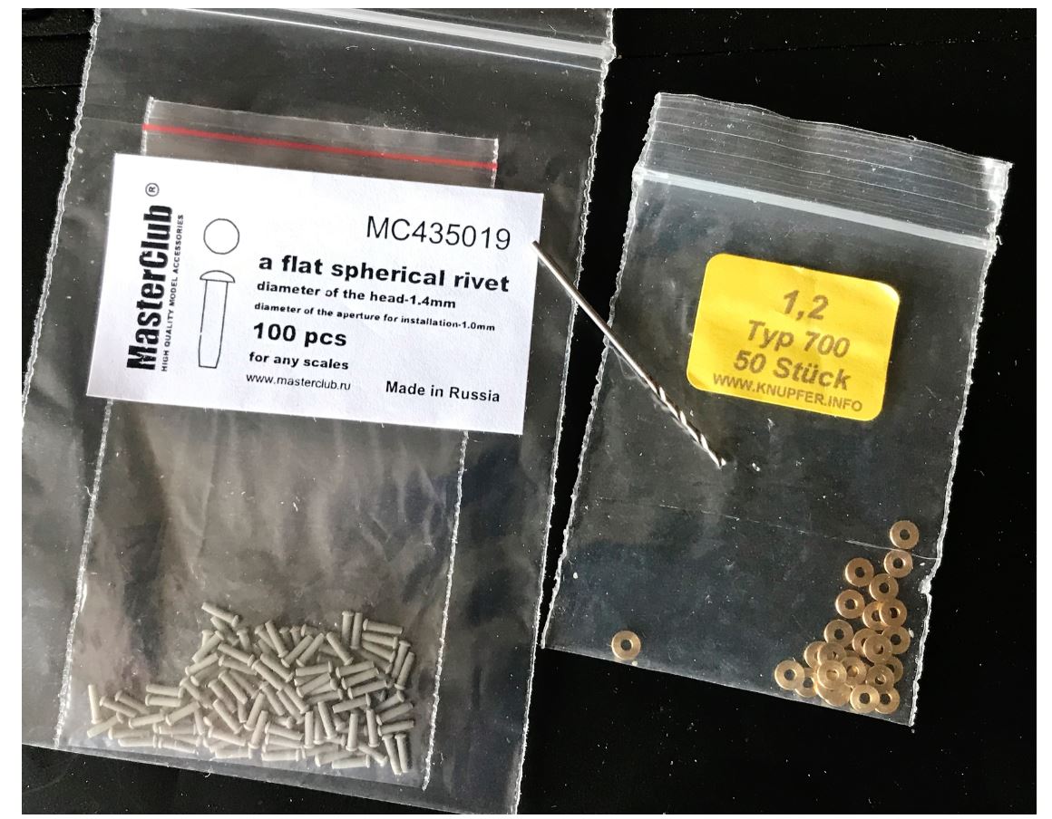 Plan B is to use Knupfer brass washers i had, along with Masterclub rivets and a 1mm drill bit to install them. Its better to use these rivets than Meng nut heads because the rivets are really helping keeping the washer in place, not just the superglue. It was the first time I use Masterclub rivets and I like them, I will use them more in the future. The issue with Plan B is that I do not have enough brass washers to finish the back of the vehicle, nor the top later, so I had to order more from Knupfer in Germany. With the pandemic, it is unknown when they will arrive.
