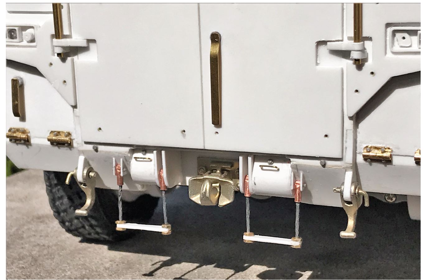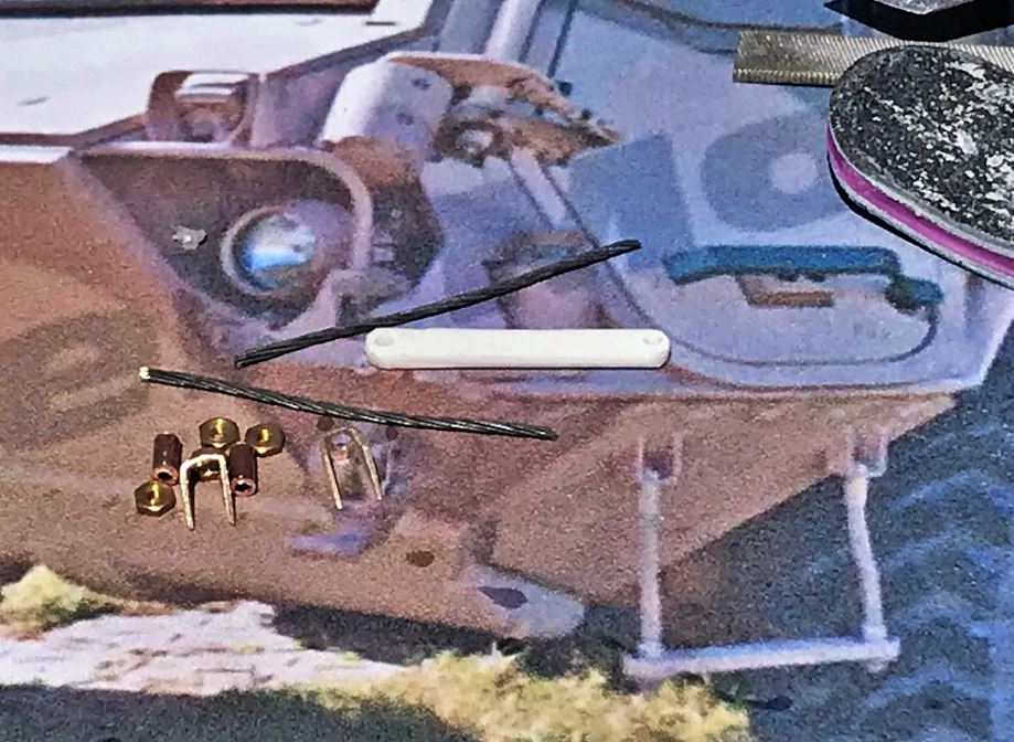 AFV-Model has a new Tpz metal step available but with the pandemic, they no longer ship to America, so plan B for now is a plasticard step with the twisted cable that provides some flexibility if hit by an object while on the move.