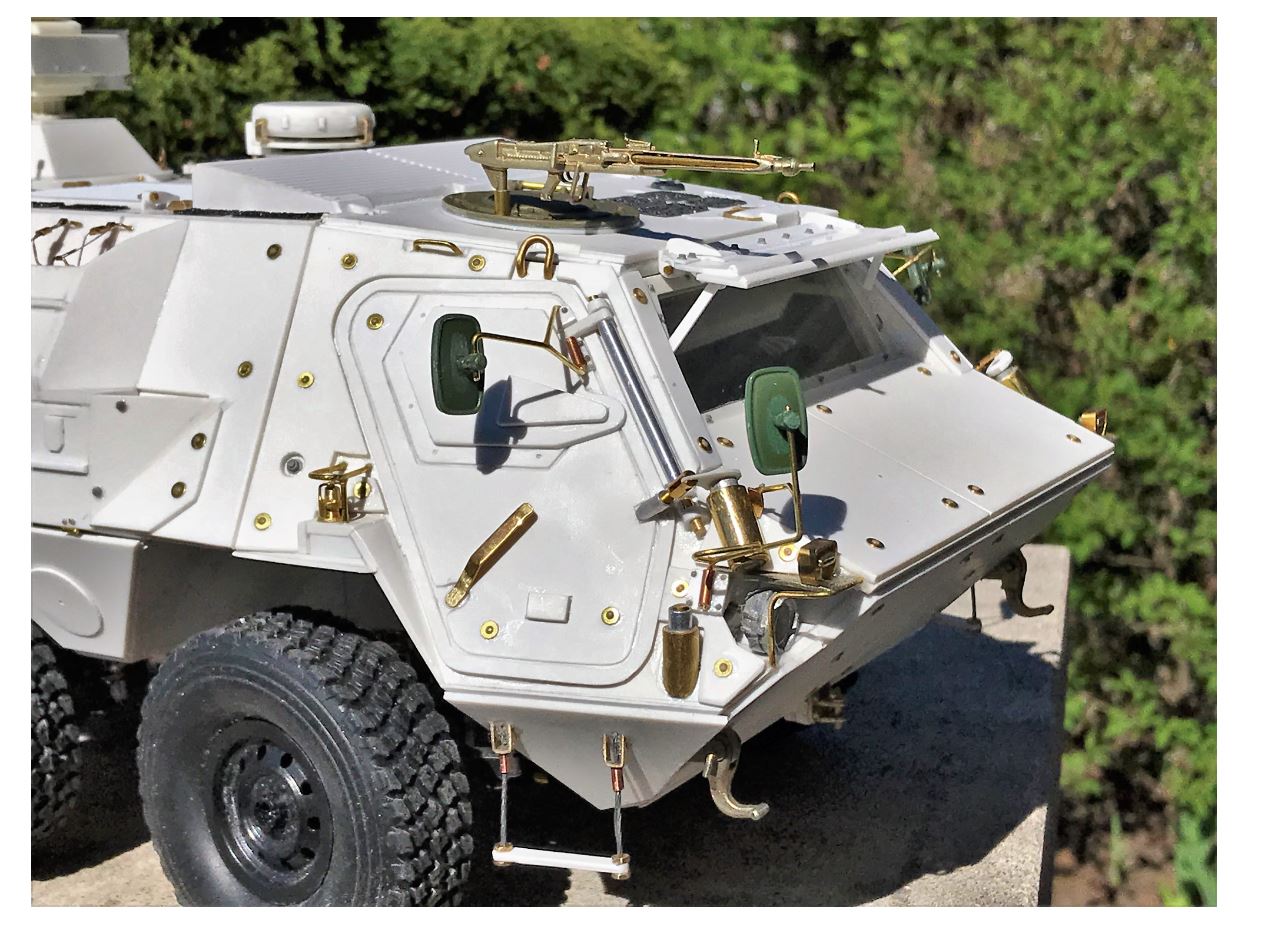 The side mirrors are made of 1mm brass and Heng Long Leopard 2A6 mirrors.