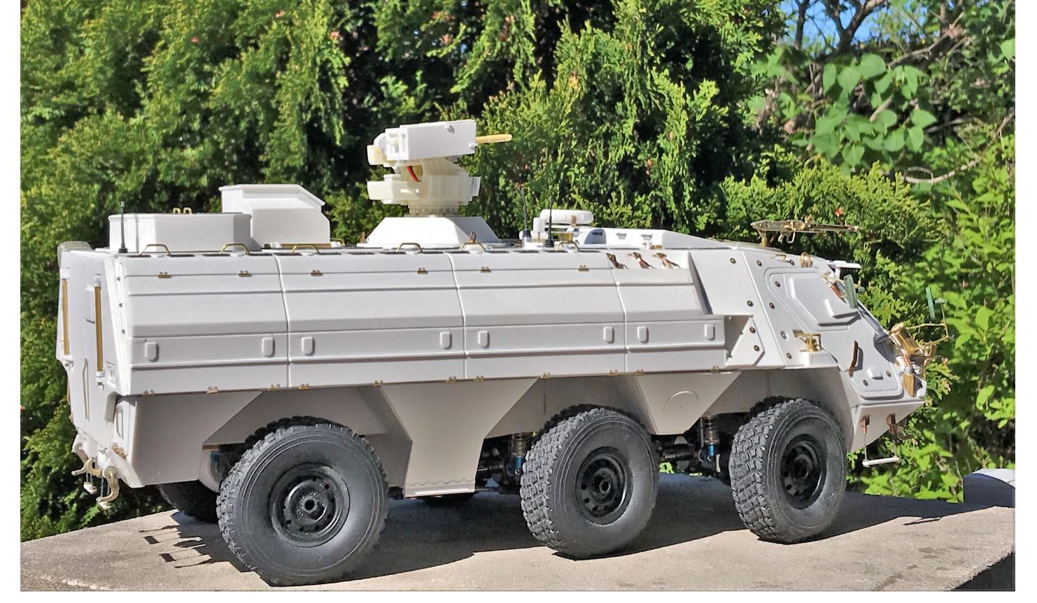 This little jewel is the AFV-Model MG3 machine gun coming with the custom rear butt mount. I installed it at the front but can also be installed at the back. For Tpz-1 without FLW200 turret, this machine gun at the front is given a large armored shield for the gunner which I guess would be in the way when shooting the main weapon from the FLW200.