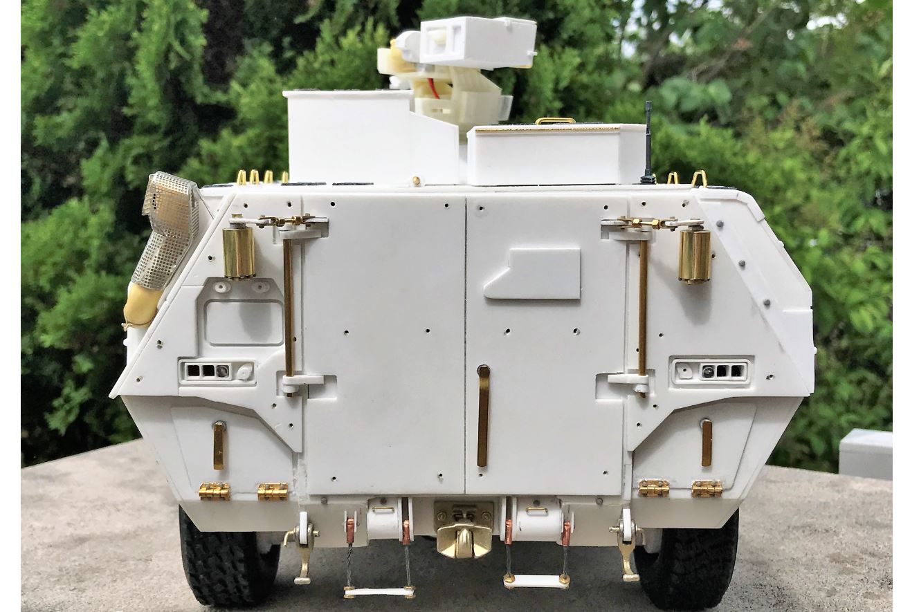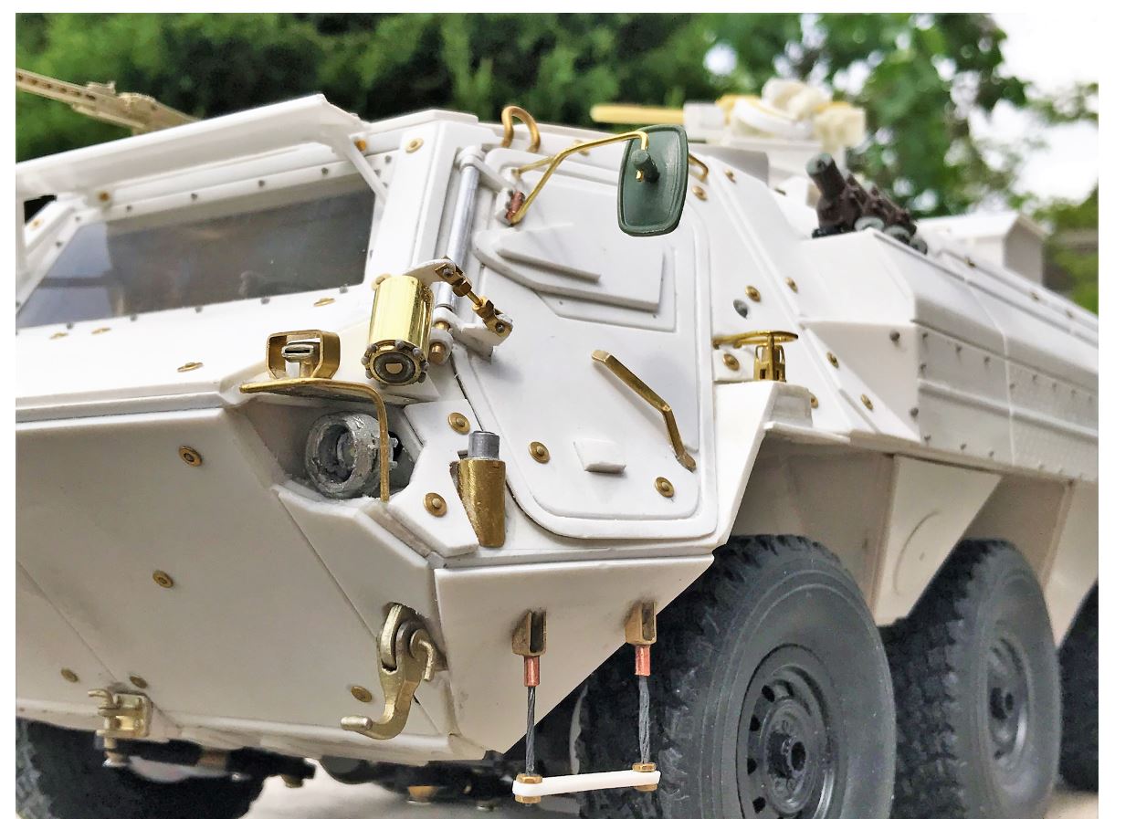 The TPz-1 A8 version with add-on armor is equipped with spring assistance mechanisms to help the crew open and close the doors. I earlier attempted to reproduce the ones on the cabin but I did cut some corners and I was not satisfied with them. As I was doing the ones on the back door, I decided to redo them all.