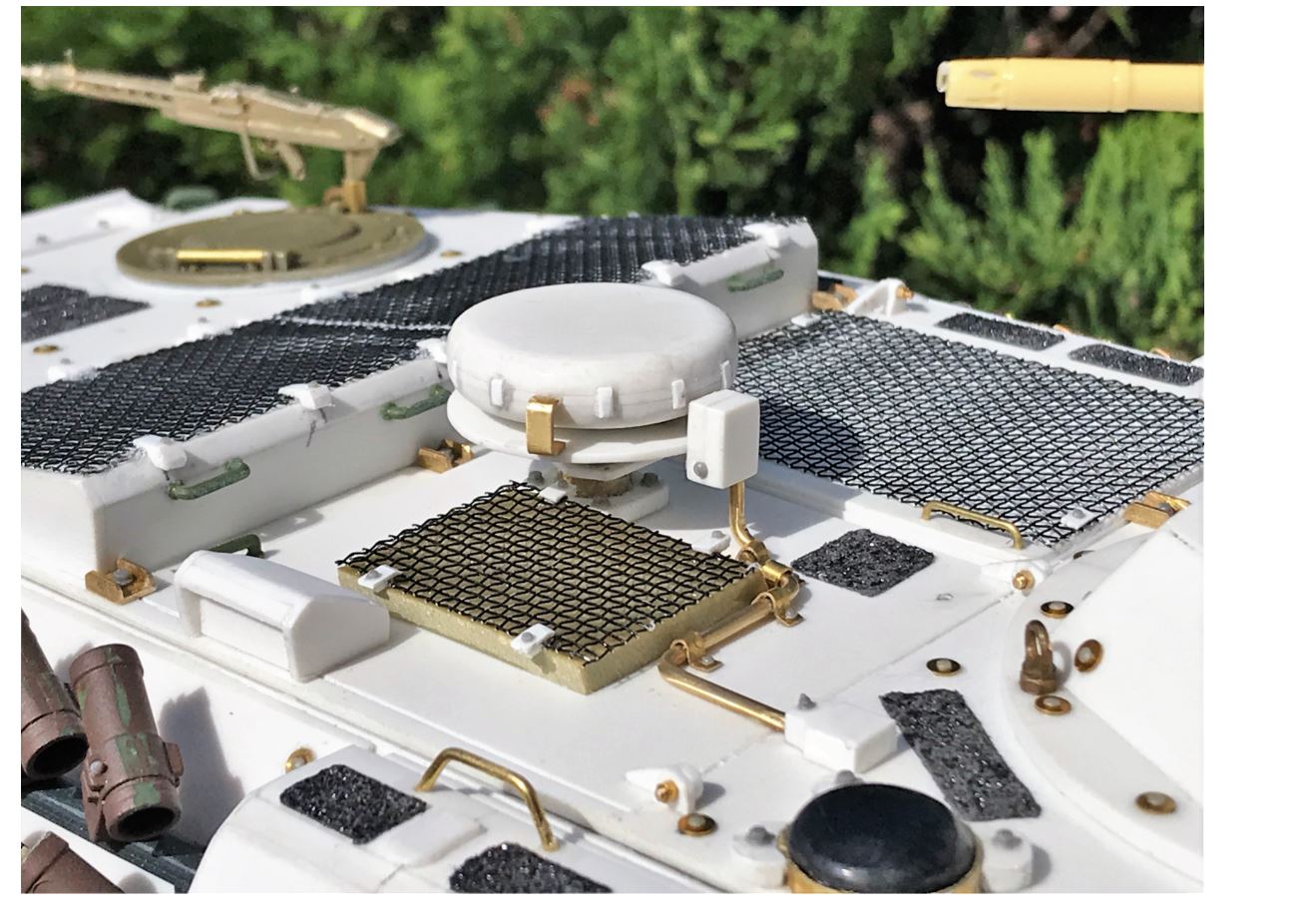 The model with its add-on armor anchor points on the roof, FLW-200 base and rear.