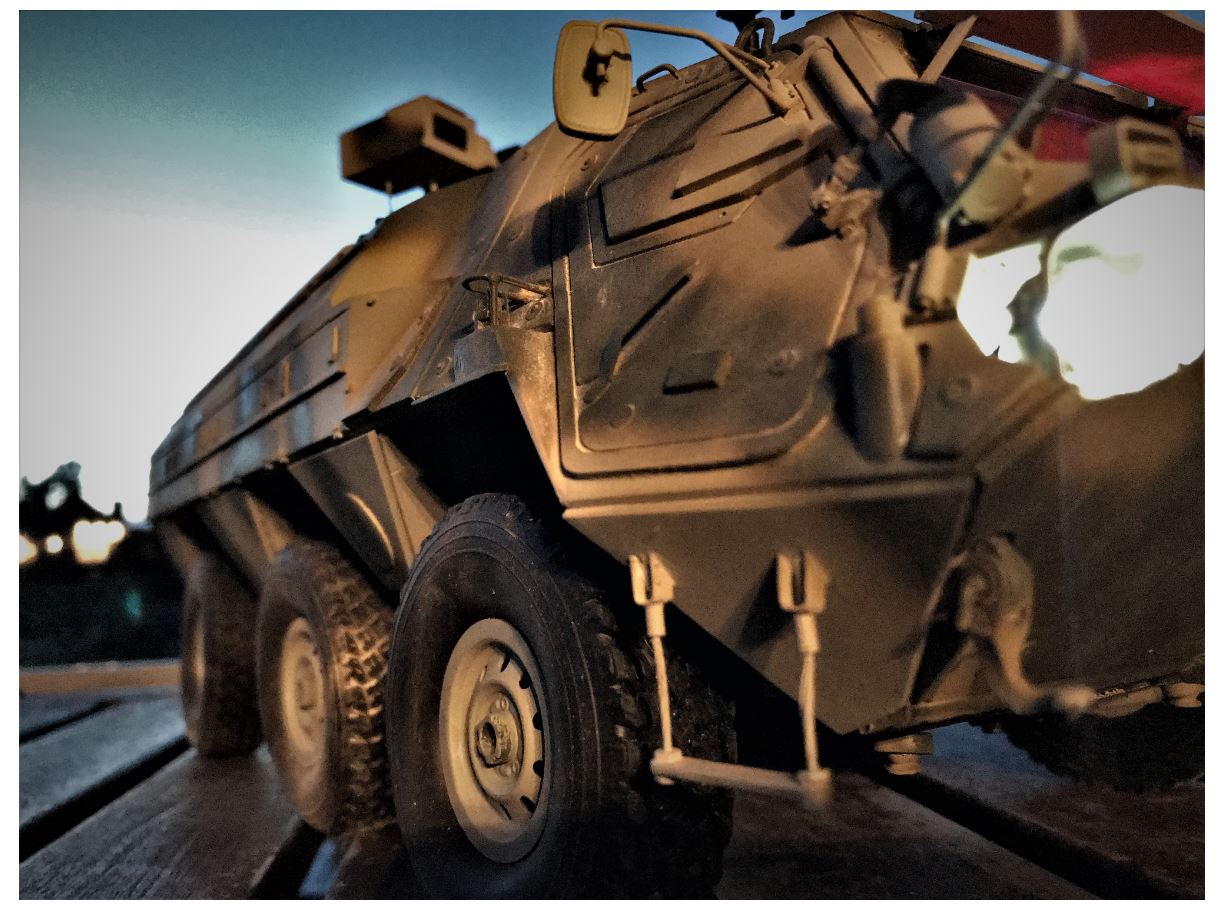 The German army vehicles are well maintained, kept really clear and in shape, I only gave it a weathering of desert sand pigments to show the vehicle on patrol in Afghanistan.