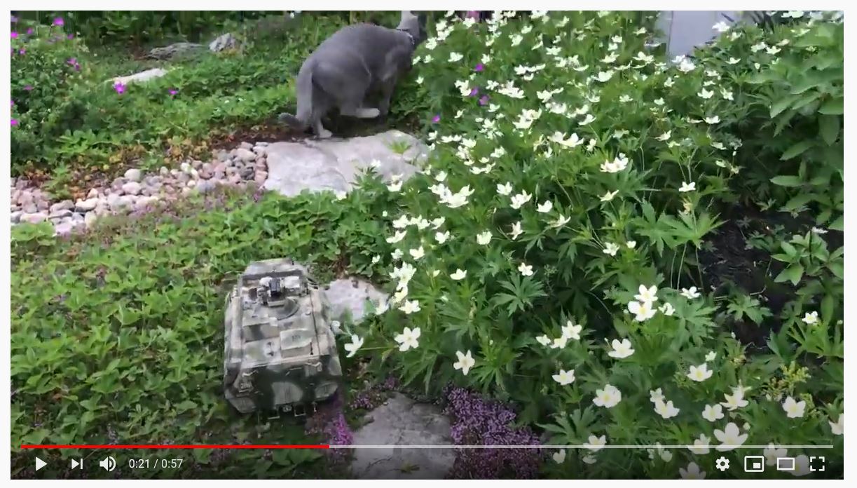 To finalize the build, here is a YouTube video link for the Fuchs in action with some cat hunting and a ride into thick terrain. The cat made good his escape before I could shoot the automatic grenade launcher. The twin engines and steering are performing well.