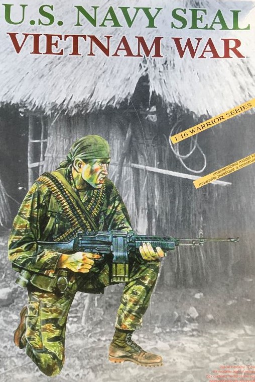 I therefore created another figure. This one is mostly based on the Dragon Vietnam Seal. Its Stoner LMG that is specific to the Seals need to be changed. The figure is difficult to build, I needed to do a lot of adjustments on every parts in order to fit them together. Model makers usually like to build idealistic tall and muscular soldiers, but this one is short and bulky. It's ok, its different. The face is not well detailed compared to the other figures on the tank and need to be changed with a resin one for a better fit.