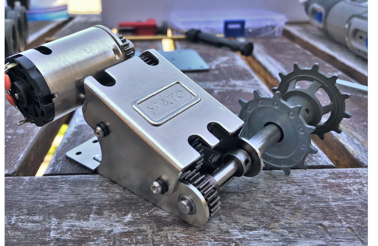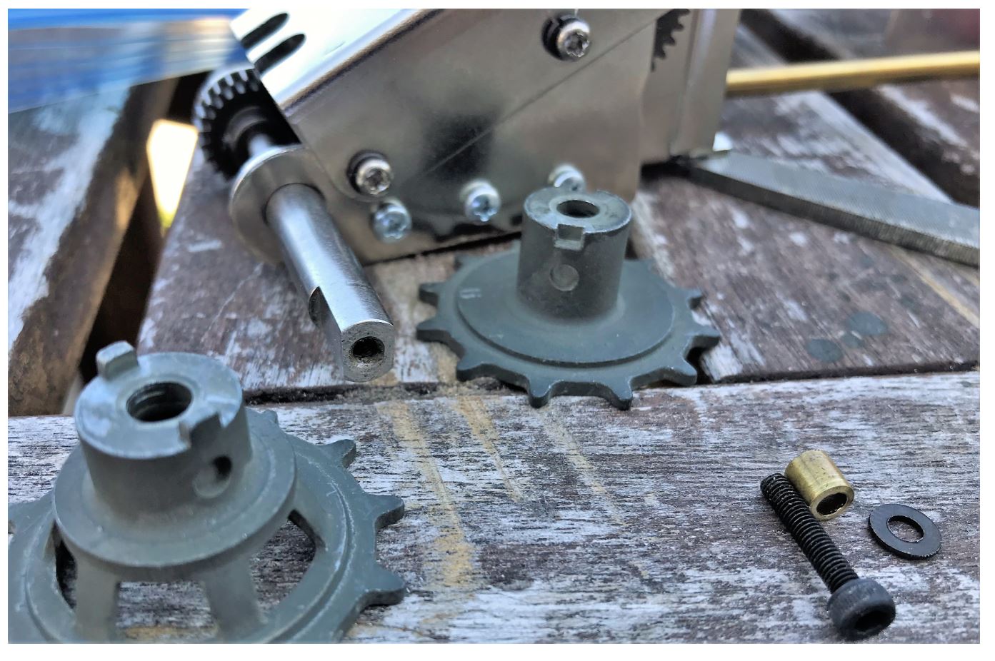 The hole for the locking screw is smaller on the Mato gearbox so a simple new arrangement is designed.