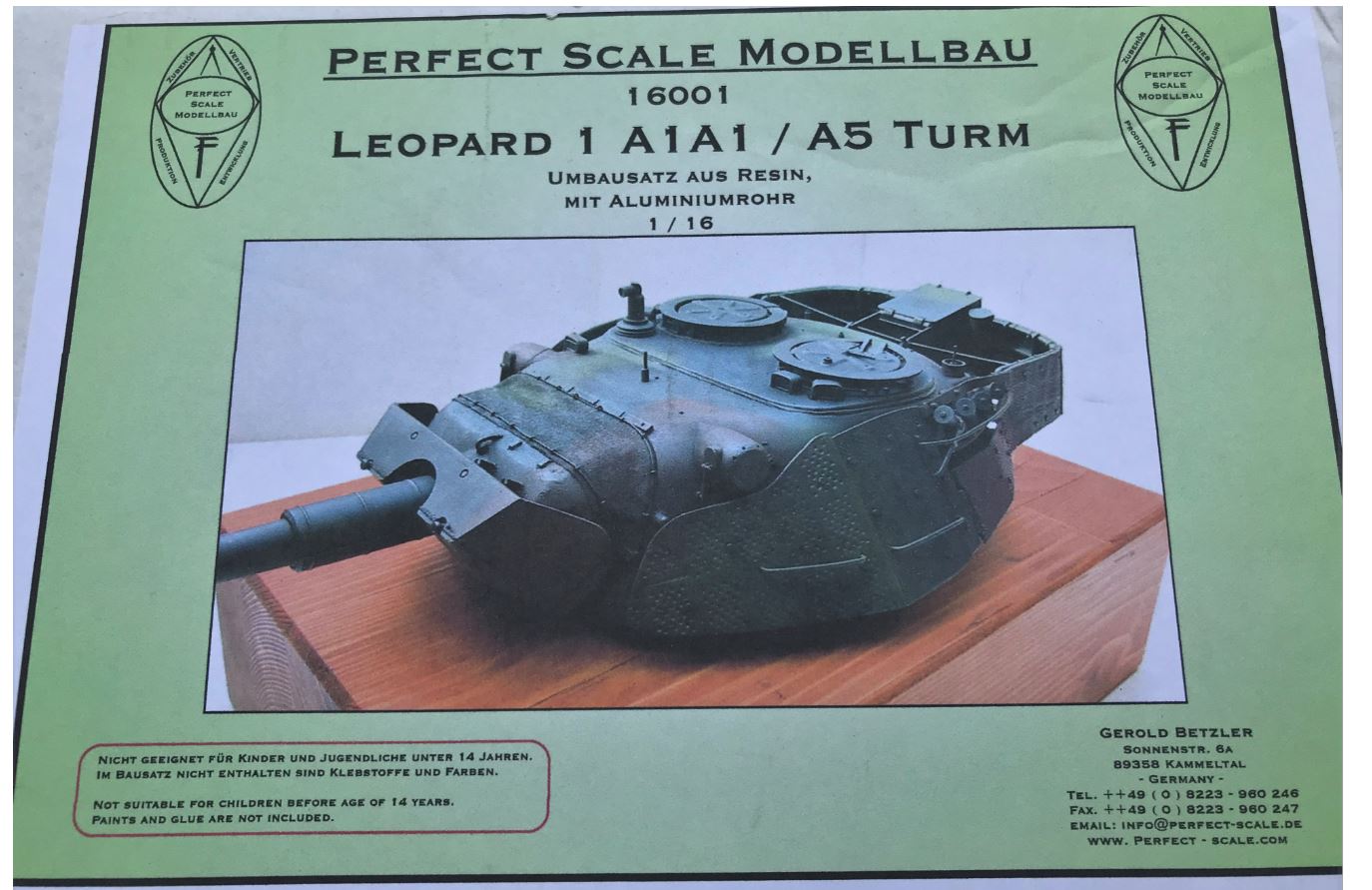 Of course, the Perfect Scale Modellbau 1/16 scale Leopard 1A5 turret will be used. It comes with bolted on armor, but these are not Mexas.