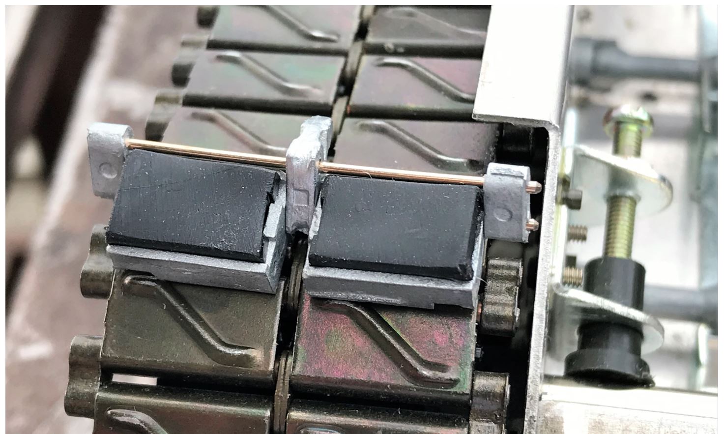 Testing the size, looks good as replacement for the Tamiya tracks. Notice how the original builder assembled the tracks.