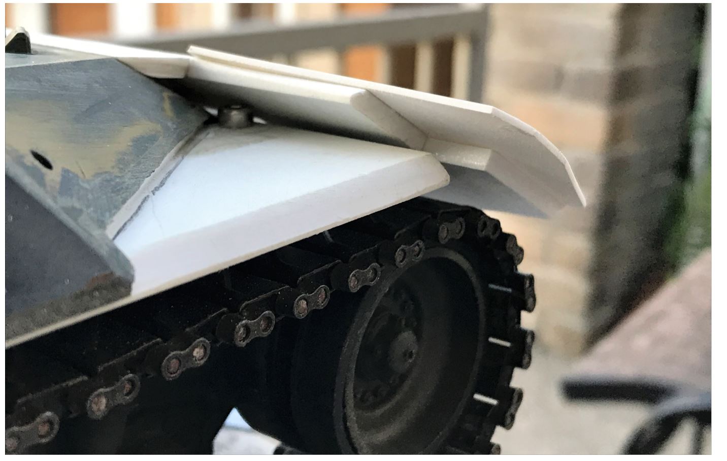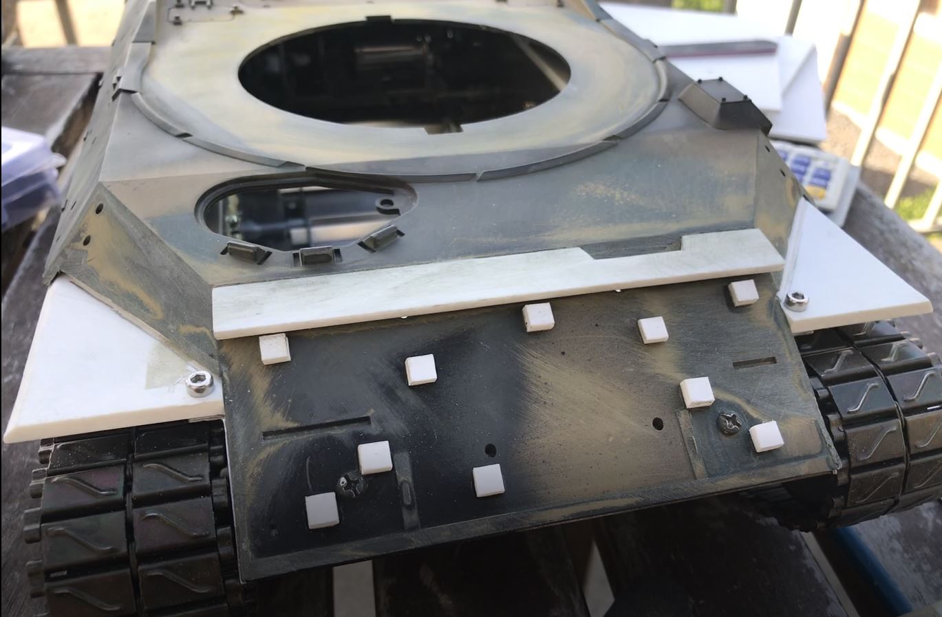 The Mexas is spaced armor and 4mm plasticard squares are put in place to ensure it is at the proper height.
