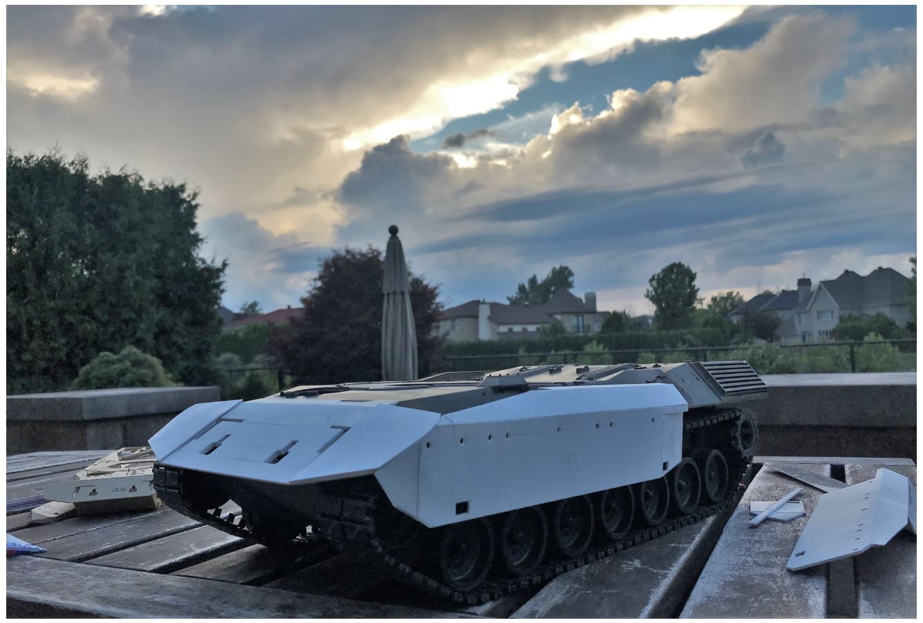 The Mexas is composed of 6 main modules. The upper front glacis, lower front hull, large side sections and two smaller connecting modules between sides and upper glacis modules. Each have complicated angles and shapes.