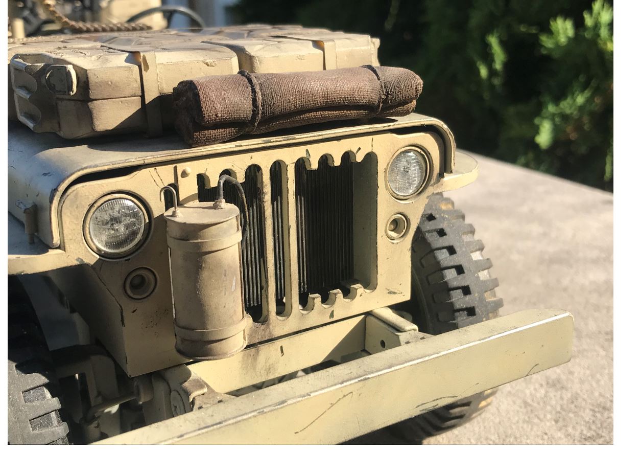 Here are the DioramaParts 1/10 Jeep head lights lenses installed, a rare luxury to have parts made for this model.