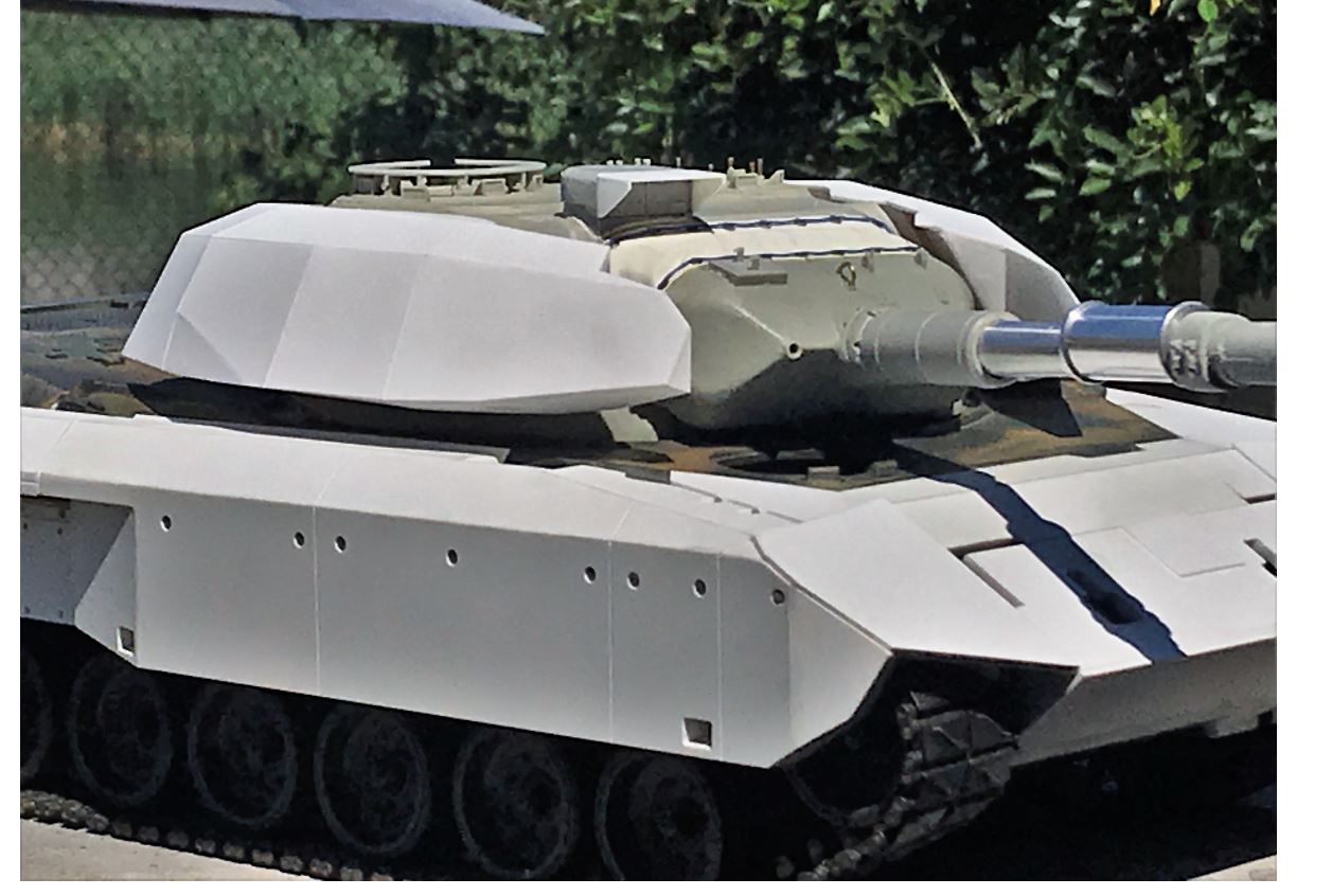 Here is the Leopard C2 with its turret side Mexas modules mounted. I made sure there was 105mm between the side tips for the mantlet.
