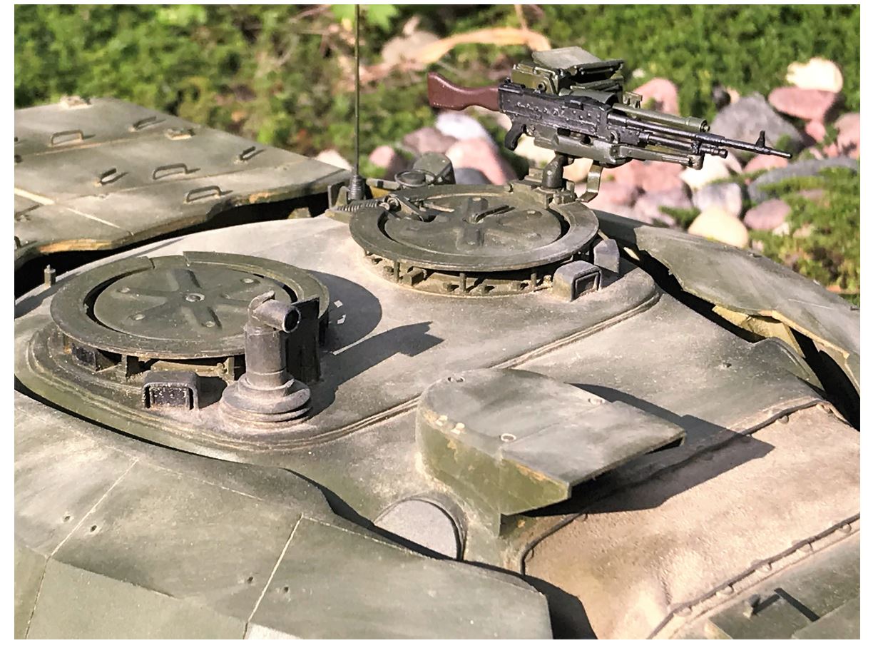 - Scratch built MEXAS add-on supplemental armor and Canadian custom modifications, such as the rear turret bins.