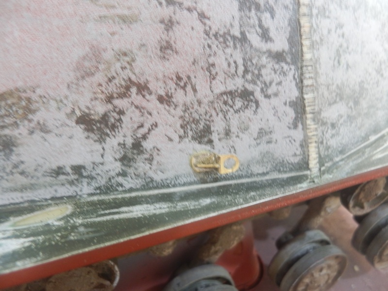 Gentle heating with a heat gun on the fuel tanks to allow 'denting' on the likely surfaces, and brass straps with soldered retaining bolts placed over the top of them.