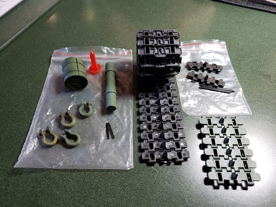 Pretty sure I have some plastic track links for the KV series tank. I have some of the fused multi link pieces that glue onto the track guards as well. Let me know if you're interested. Should be able to mail in an envelope.