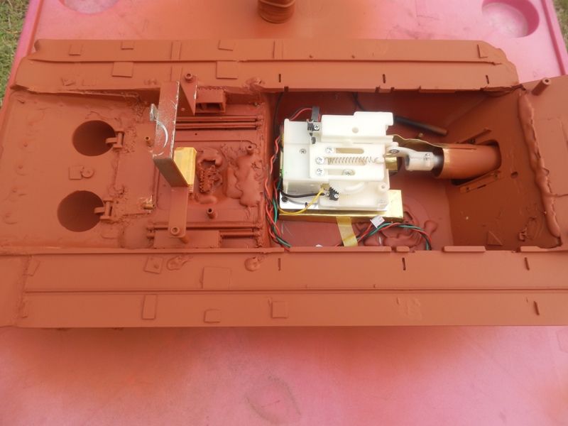 After several renditions of Mr Surfacer 500 stippled on with an old brush over the various areas that I thought needed it, the outside too was hit with the primer.