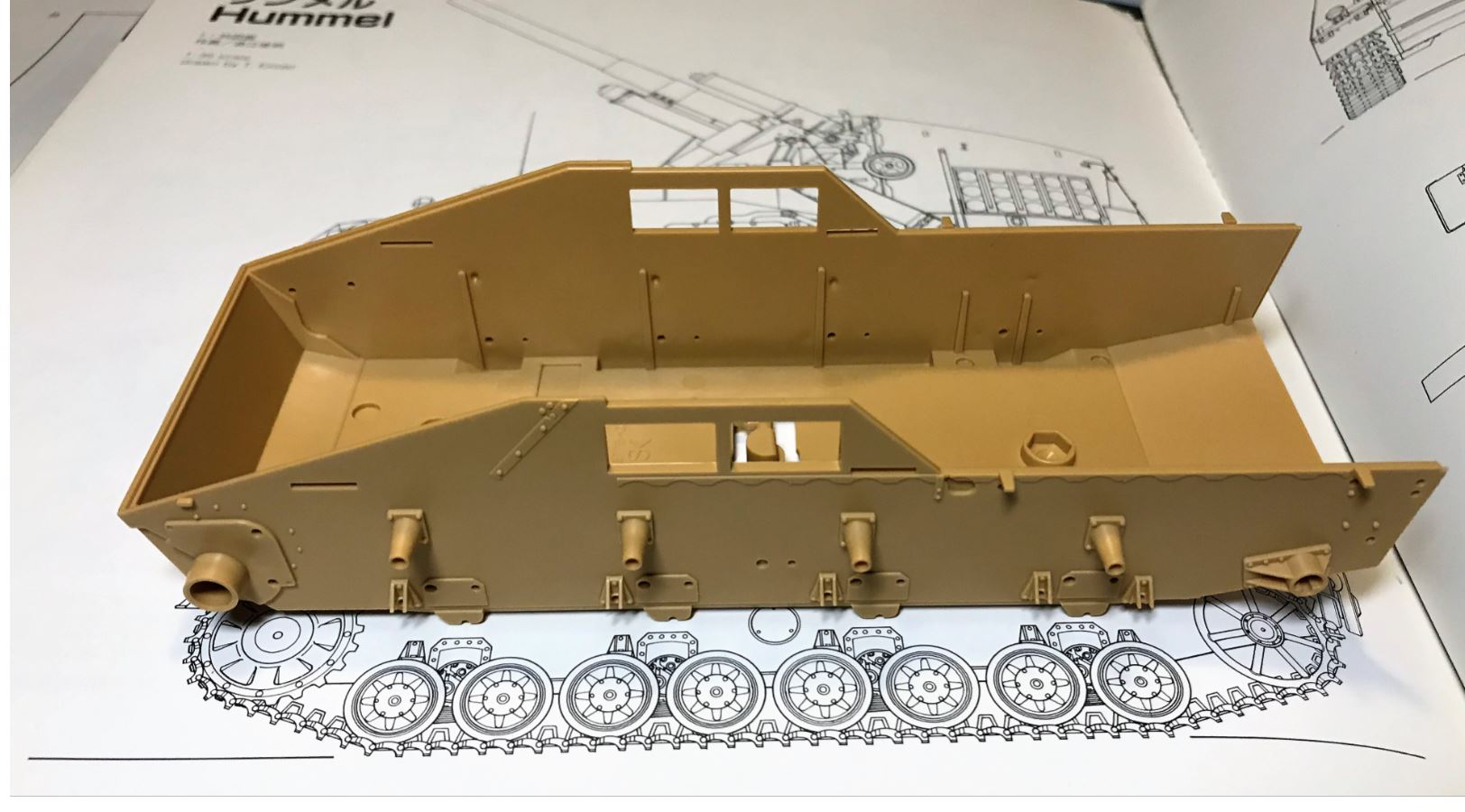 When comparing the Tamiya and Dragon 1/35 chassis next to each other, they are equal. I will therefore use the 1/35 kits as references and look at any Hummel graph in books with great skepticism.