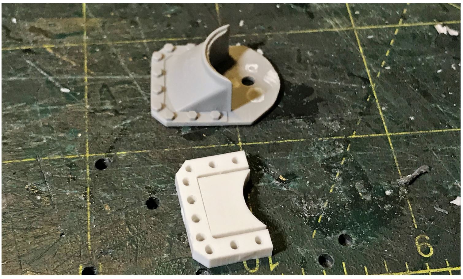 Showing how the Tamiya suspension mount parts compare to the provided Ludwig parts, no contest.