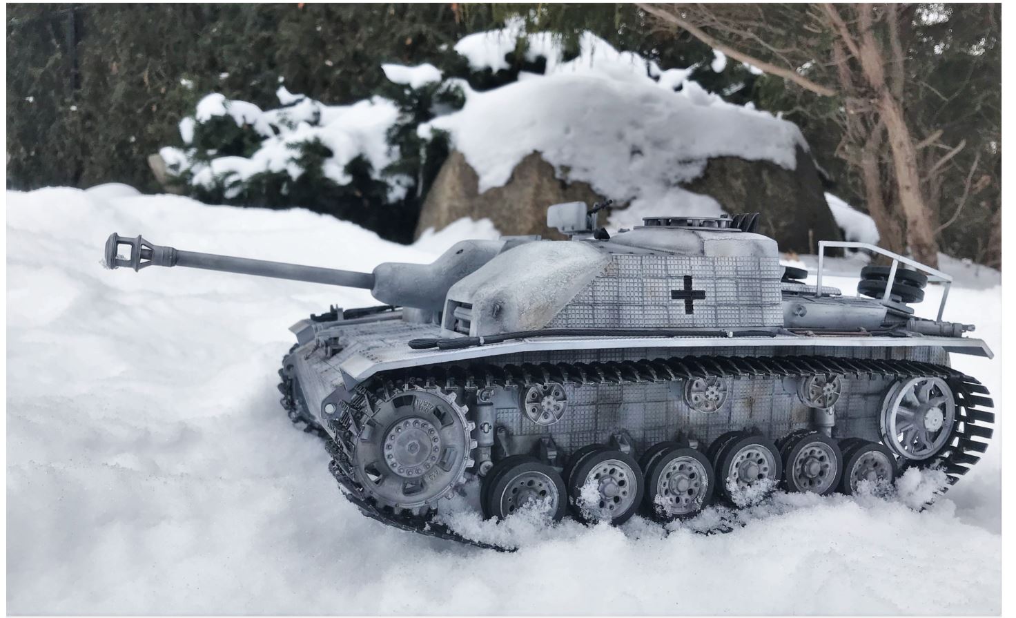 Can't wait for a snow video! Love that Stug! :clap: I've always found the German's use of concrete for a little extra armor fascinating. I really like the cannon recoil and the ostketten. Actually, I like everything about it! Fabulous job! :thumbup: