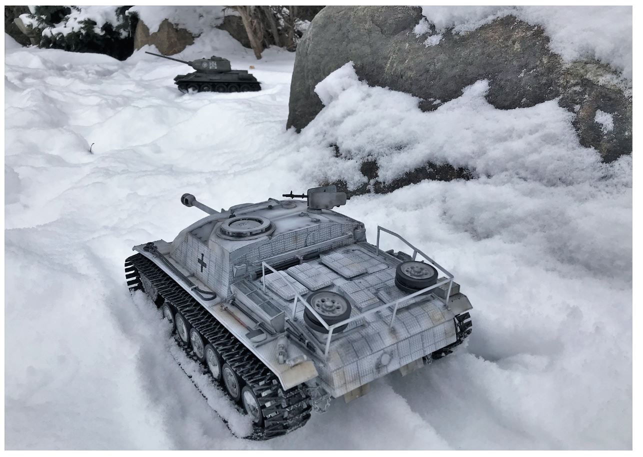 Perfect build, not too much, not too little! :clap: Looks right at home in the snow. I like how the Ostketten throws up a little "rooster tail" under full power. I've always liked the way these tracks look, something not seen often enough IMHO. She appears to have plenty of traction! :thumbup: