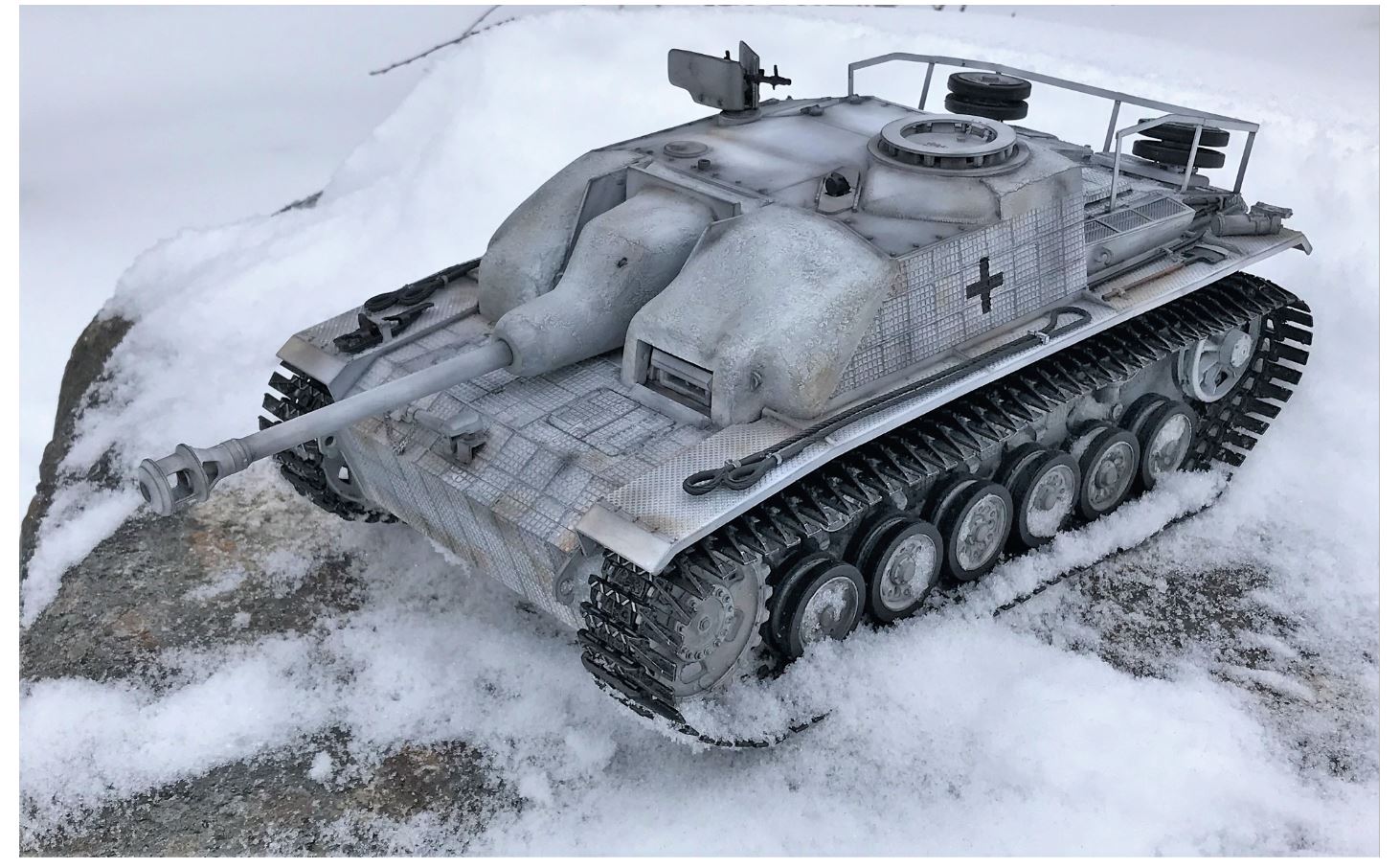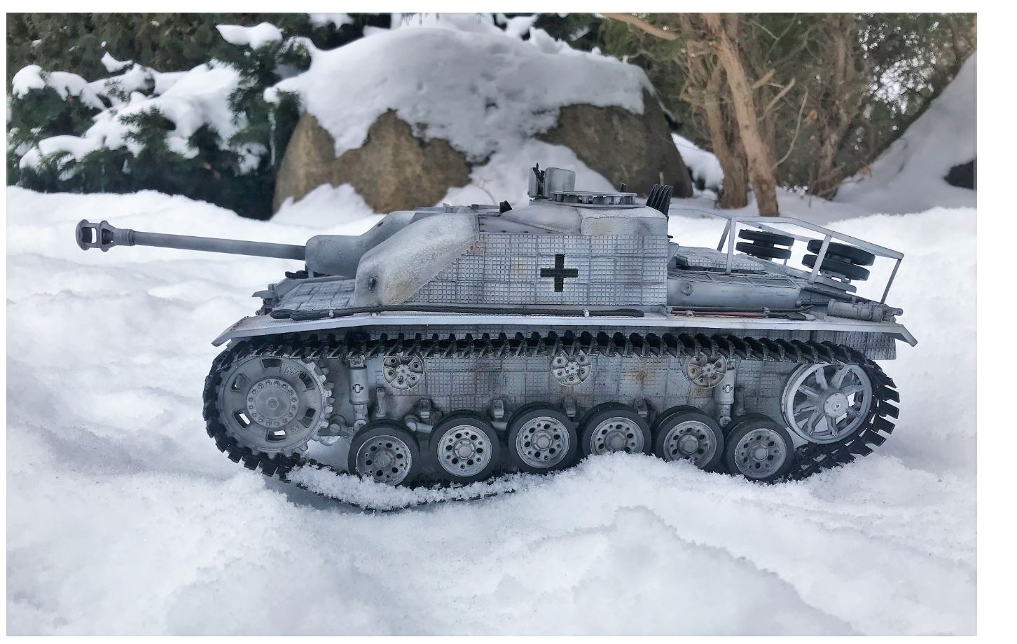 Can't wait for a snow video! Love that Stug! :clap: I've always found the German's use of concrete for a little extra armor fascinating. I really like the cannon recoil and the ostketten. Actually, I like everything about it! Fabulous job! :thumbup: