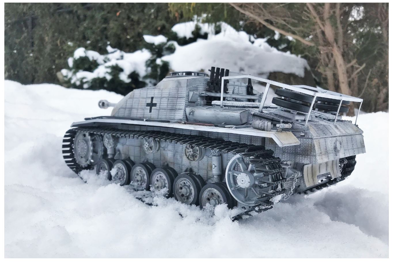Perfect build, not too much, not too little! :clap: Looks right at home in the snow. I like how the Ostketten throws up a little "rooster tail" under full power. I've always liked the way these tracks look, something not seen often enough IMHO. She appears to have plenty of traction! :thumbup: