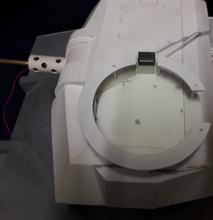 Now to work out the secondary armourment of the gunners MG, this is on a circular raised platform above the hatch, it will have to be in 3 pieces as there is a commanders periscope built into it plus the gunners hatch hinges pass through the ring when the hatch is opened.