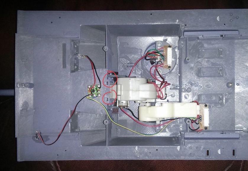 Mine looks different inside. Roughly where your circles are, mine has two brackets. Each bracket is held in place with 2 screws. Roughly where the circuit board is in your picture mine has a circuit board mounted to a removable piece of plastic. It is held in place with 2 screws also. If I remove all of these screws the whole assembly is loose. BUT the mantlet is too big to fit through the hole in the hull. The mantlet has two small screws holding it to the assembly, but even with those screws removed the mantlet is still tight and will not move.