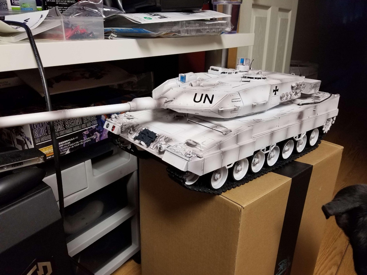 Just a few weeks ago I bought a Heng Long Leopard 2A6 with upgraded Metal tracks, gearbox and drive wheels. It was the one I'd orginally been eyeing but decided I'd have trouble finding a place to store 2ft worth of tank in the house but my experience with my Jagdpanther left me wanting so I pulled the trigger after browsing Ebay at work.
