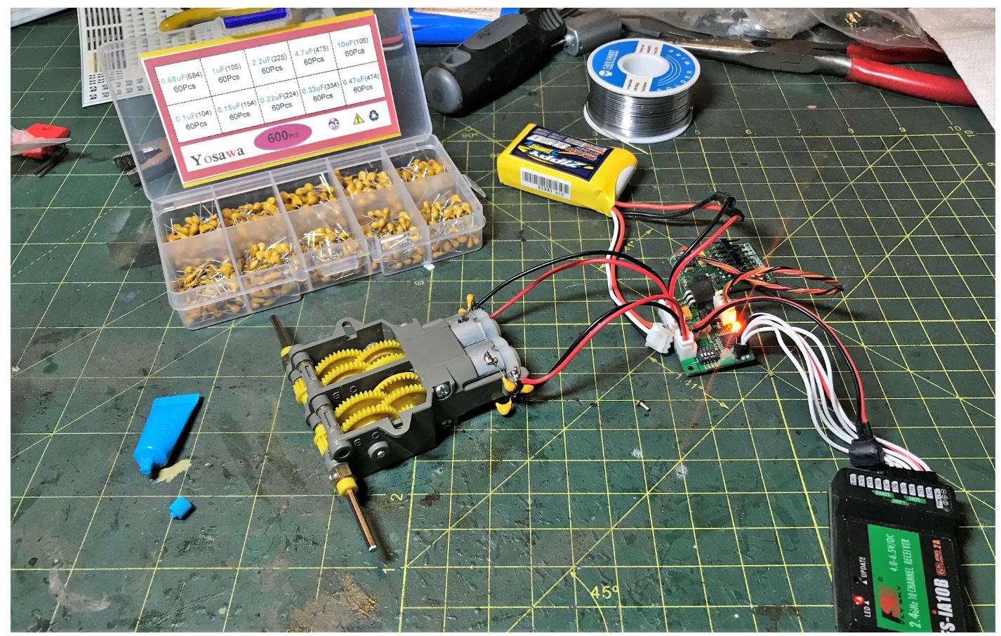 With this setup, the motors are extremely responsive to the speed control stick of the control unit, and the annoying noise is totally gone. Test everything...