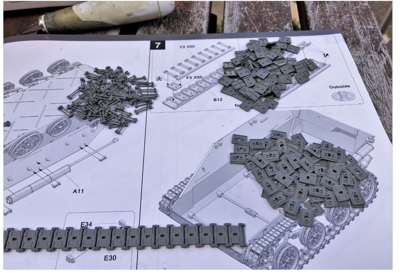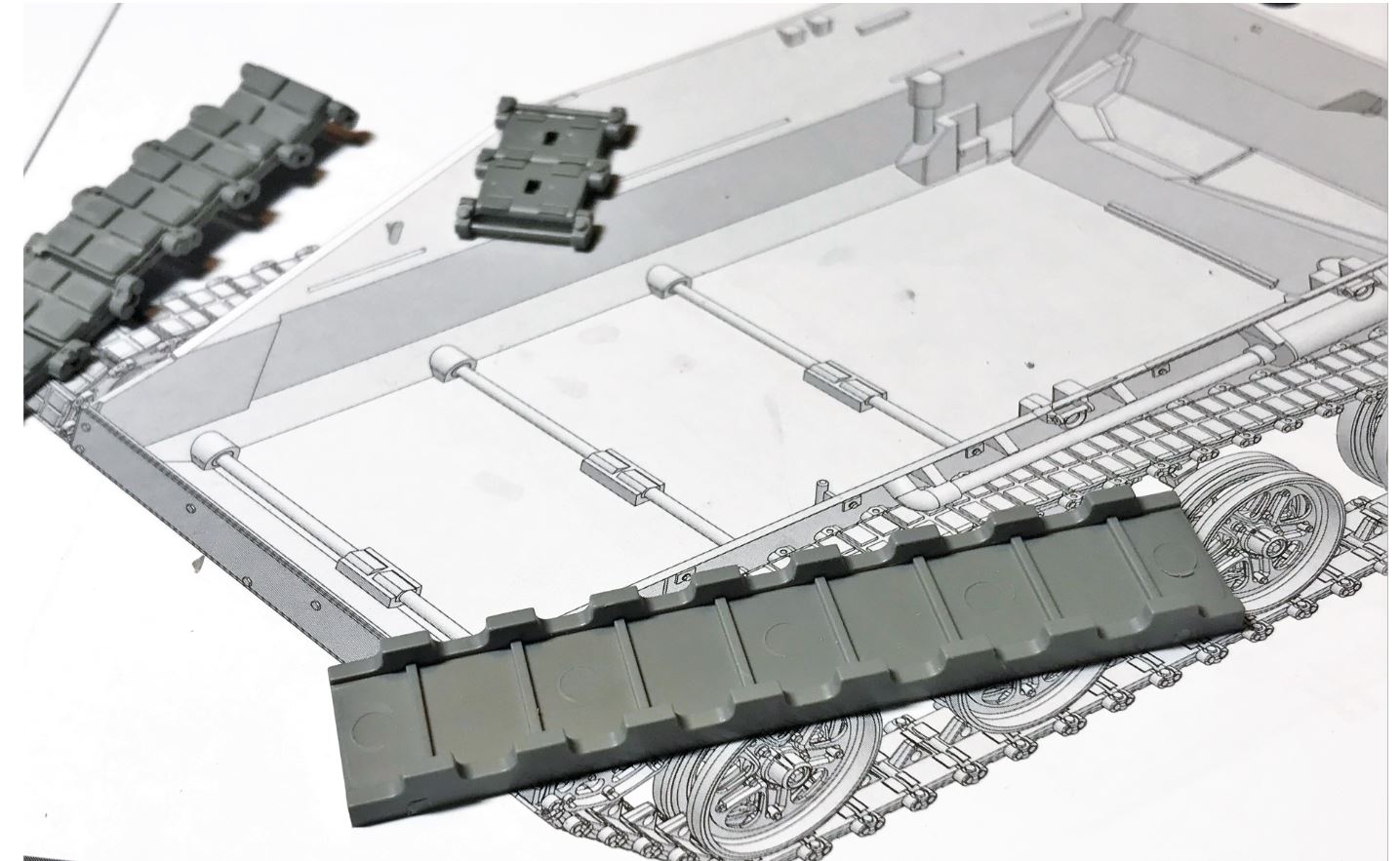 I was happy to see the tracks, similar in concept to the ones on the Stuart. The separate track links allow for RC use as is, 50 links on each tracks.