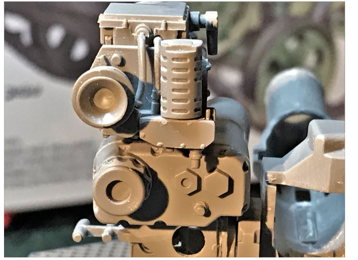 Its construction takes time and is tricky due to the number of parts involved. The sight and its mount alone has 39 parts !!! I think the designer went overboard and could have simplified the construction of the sight without reduction in the level of details. Building this sight will test your patience, the fit is good but not perfect, dry fit everything.