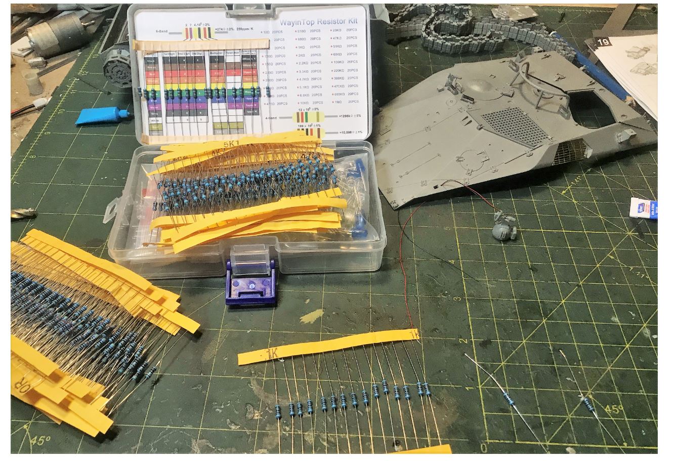 I tested a bunch of them to select the kind of light i was looking for. I was surprised how much the LED can go from xenon bright to low dimmed candle light by just changing the resistor added to the positive wire. With so many varieties and not really knowing anything about resistors and the complicated formula to select the optimal one, i tested many strength and picked the 1K, it seemed to do the job...