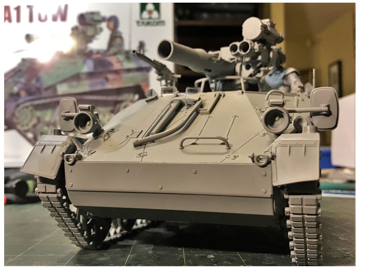 View of the model when firing the TOW missile, with tracks running back a bit.