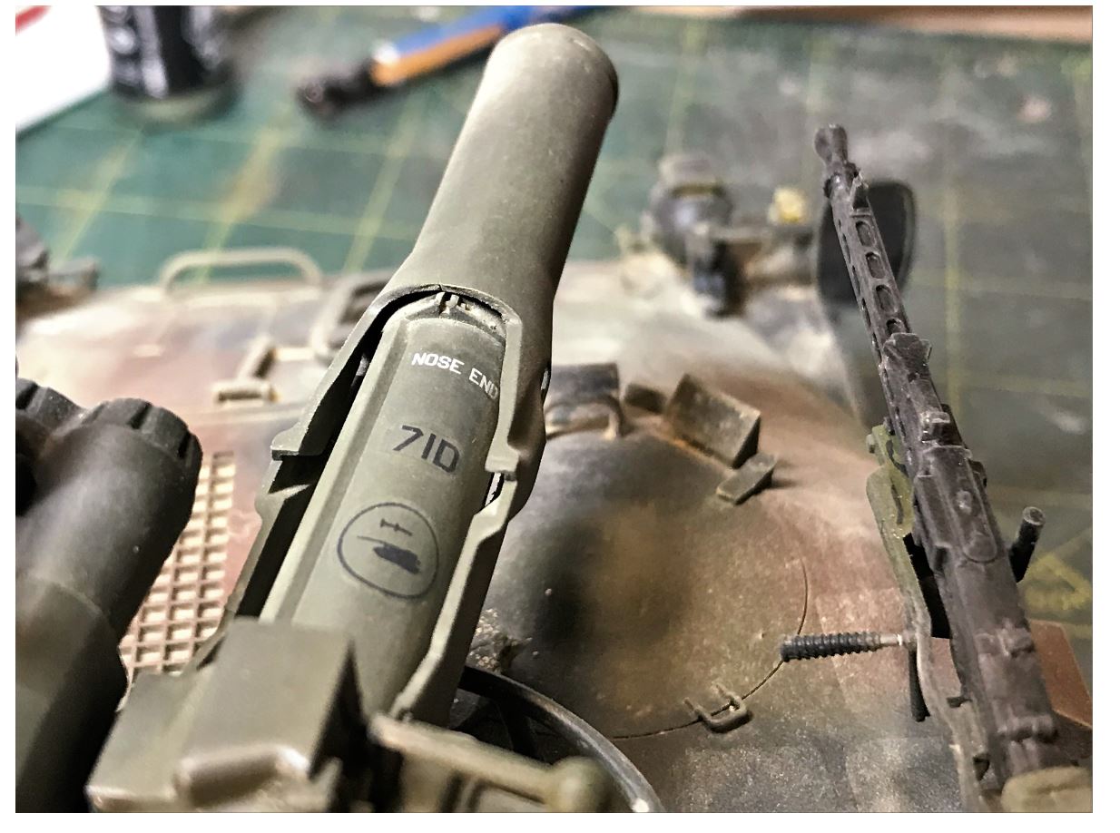 Here we have a loaded TOW missile... the wire goes out where it will enter the base of the launcher all the way inside the hull, fully hidden.