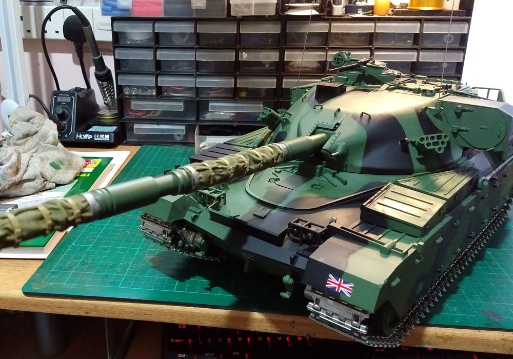 As an RC model it works well enough but I really wanted to do something more for it, both as a RC model and representation of the Chieftain. Haya already sells some 3d printed parts to take this Chieftain from a Mk.3 towards a Mk.5 (the final production version although the army's 'Totem Pole programme' of upgrades provided later versions up to the last, a Mk. 11). Moreover, I already began to modify some parts (e.g. cannon barrel, see in pic above) but was not happy with the results.