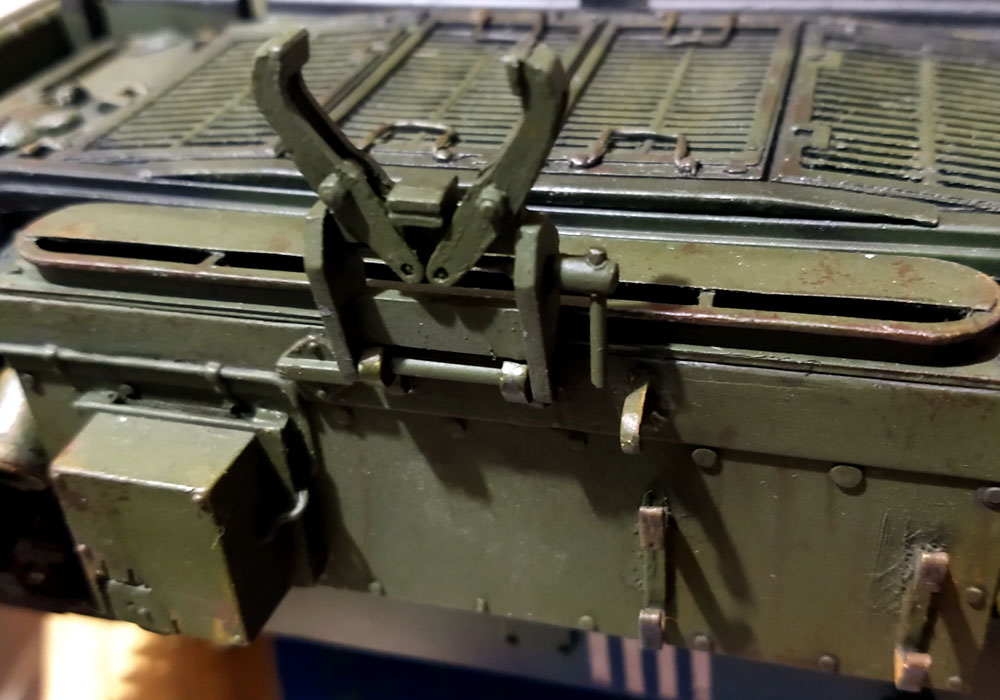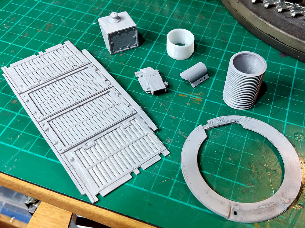 Here are a couple of the more difficult parts from the Fusion 360 collection, the NBC no.6 pack for the rear of the turret and the later design travel lock which I designed to be fully functional.....