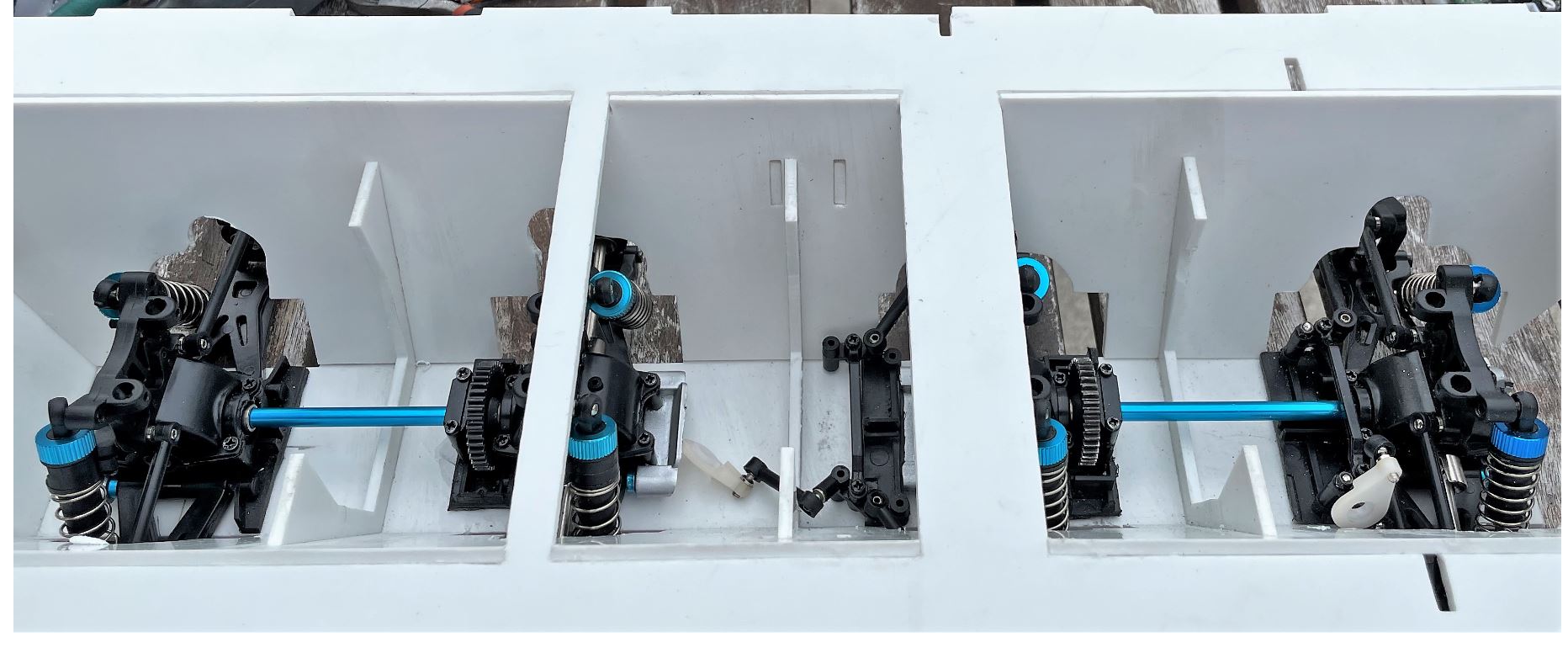 This is the proper time to perform the metal upgrades. I am still missing the metal steering so these will be added later as long as Unit A and B are made ready for them when they arrive. In any cases, the priority at this time is to install the units and then take care of the motorization.