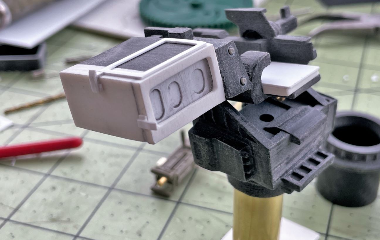 The feeding mechanism scratch built in plasticard. Not everything can be 3D printed.