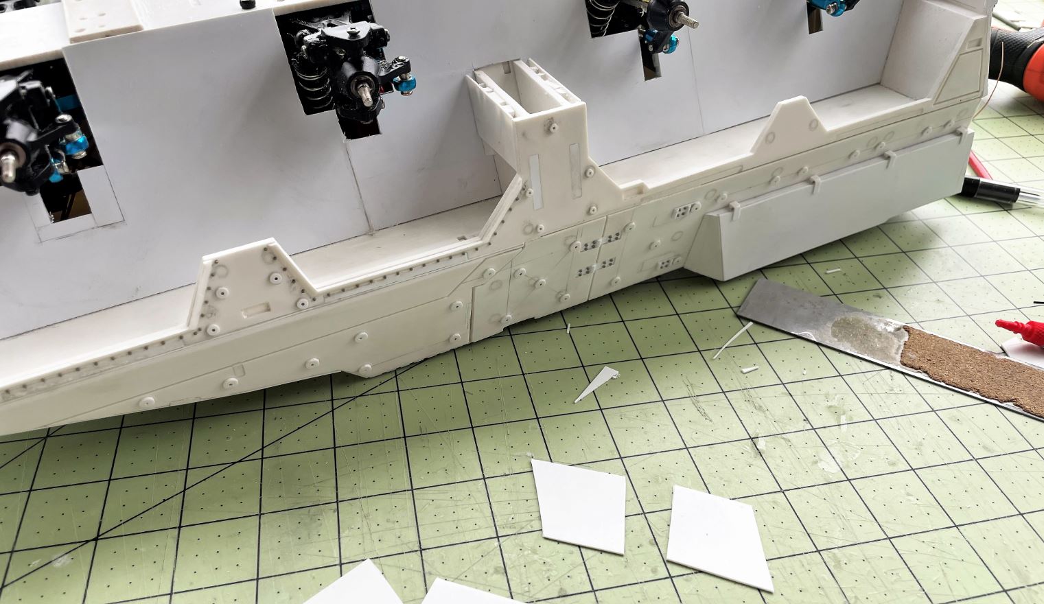 Lots of small details were added to the hull and roof during the walk around. The Ludwig 3D printed mirrors were used. The second row needed modifications.