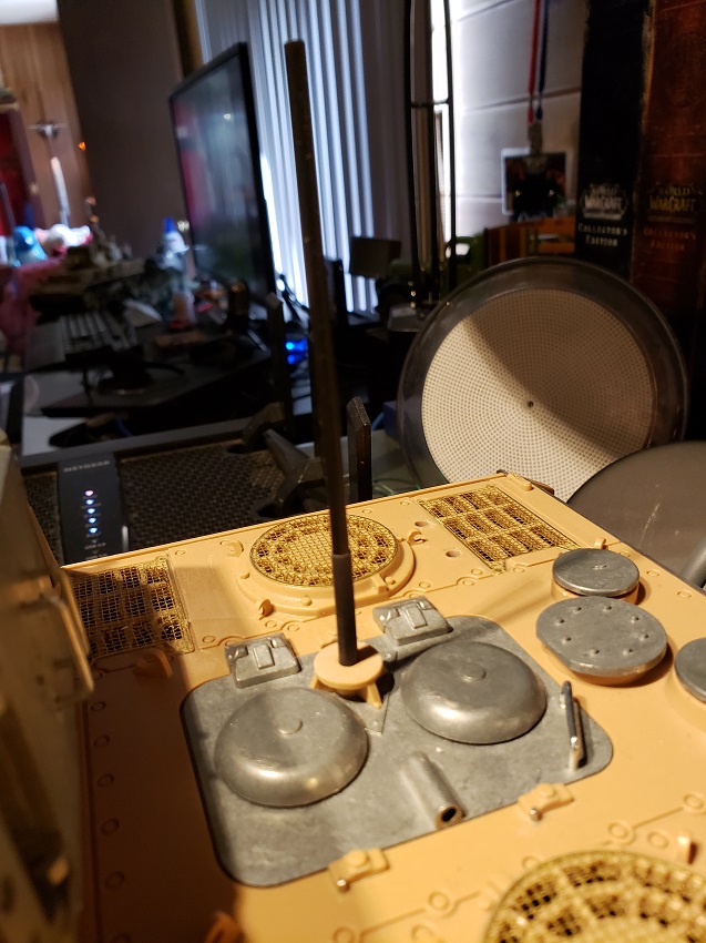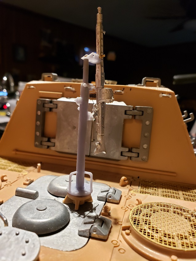 Good afternoon, Herman and Estniche. Along with a 'Coming Soon' Porsche King Tiger rebuild, this Jagdtiger will be one of the biggest pieces of German Armor that I work on. It has been and is great fun! Certainly eats up the real estate. ;o) This afternoon sees me working on the rear deck Anti Aircraft MG mount. I have a nice MG 42 to attach to it but first comes the mount.